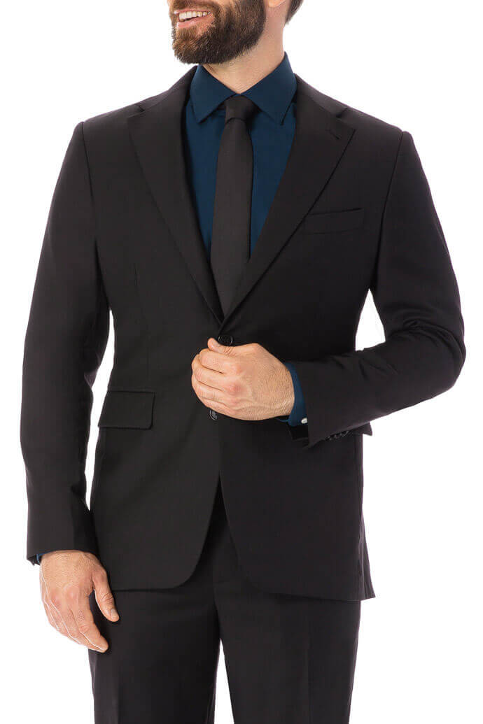 A perennial favorite for all formal occasions, you can't go wrong with our standard black. 72% Polyester, 21% Rayon, 7% Spandex Super 100's
