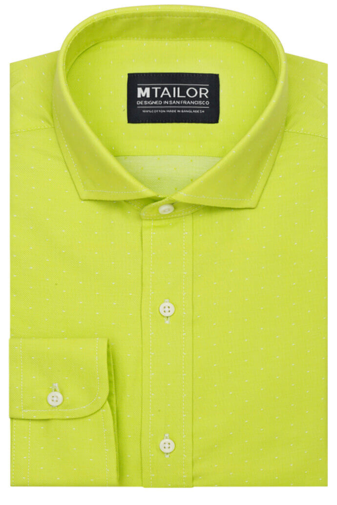 A vivid green speckled shirt is sure to spice up any outfit! 100% Cotton Broadcloth Medium Weight