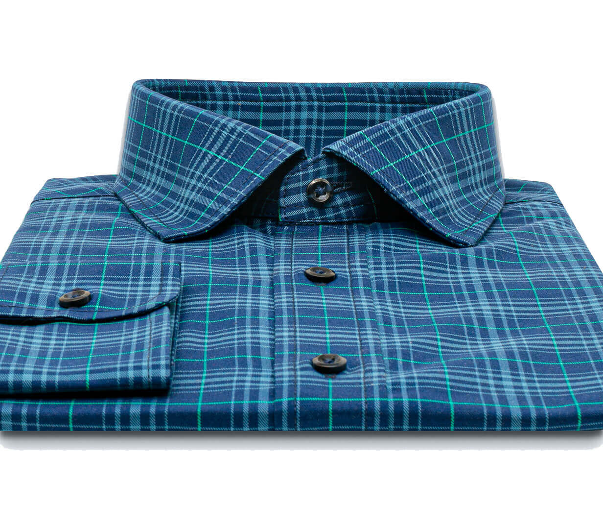 Our highest thread counts with a superior hand feel! Look cool, calm, and collected in this tropical blue shirt. 100% Cotton Twill 140's 2-Ply, Medium Weight