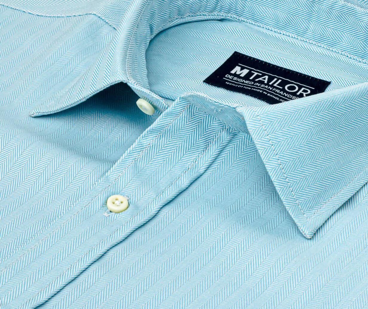 Our highest thread counts with a superior hand feel! Daydream of clear blue waters in this brilliant blue shirt. 100% Cotton Herringbone 120's 2-Ply, Medium Weight