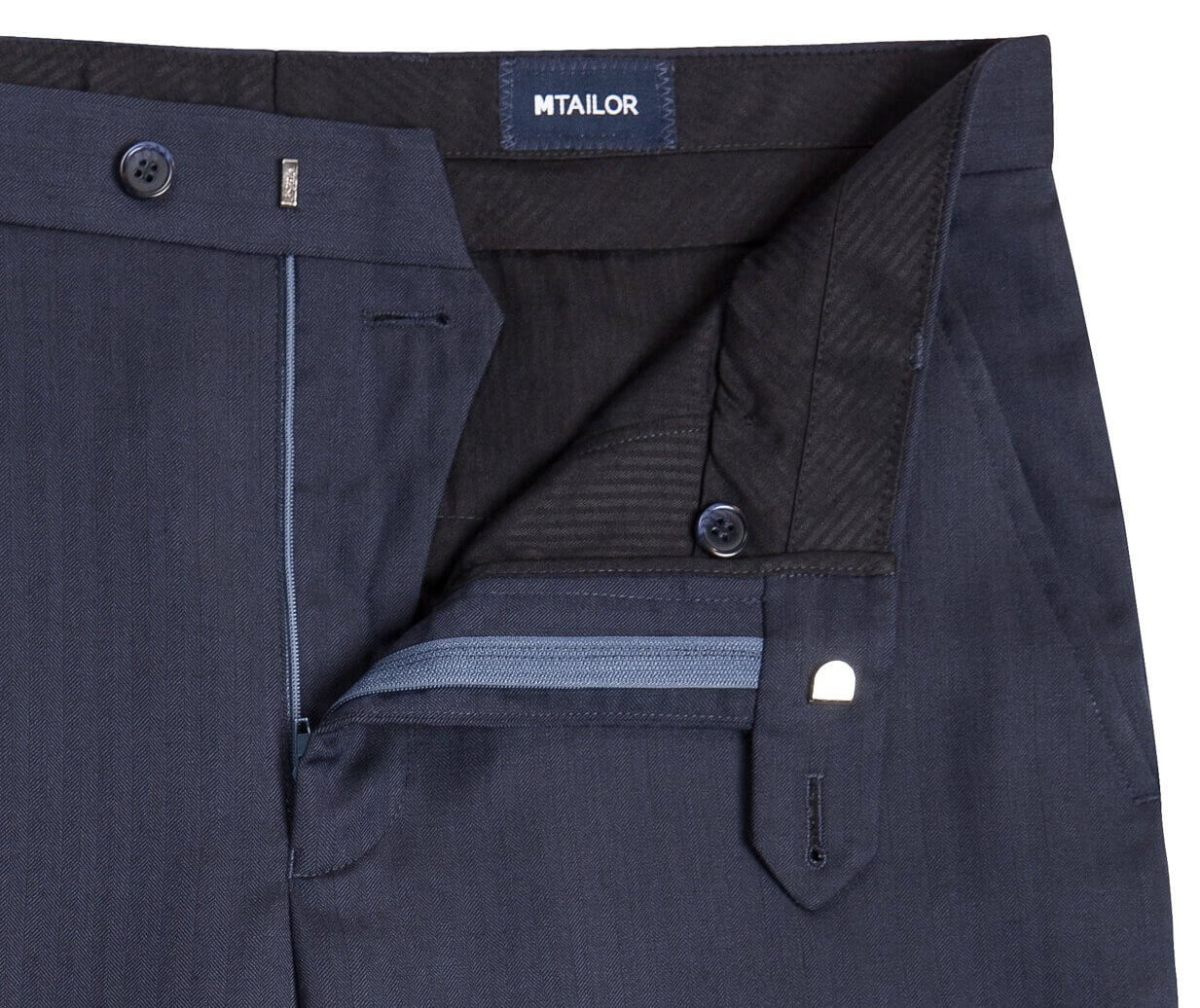 Navy is always a classic shade, and herringbone is a timeless style choice. 100% Wool Herringbone Super 100's