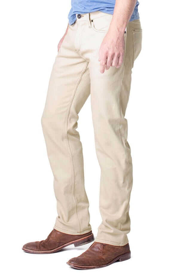 Our Premium denim is soft, luxurious, and made just for you! Brighten your look and have a little fun with these light tan jeans! 99% Cotton, 1% Spandex 11.5 oz Washed Denim