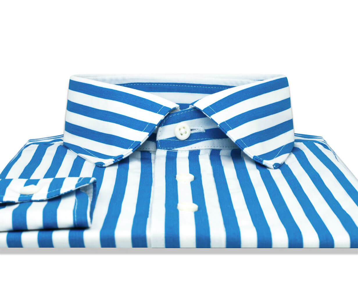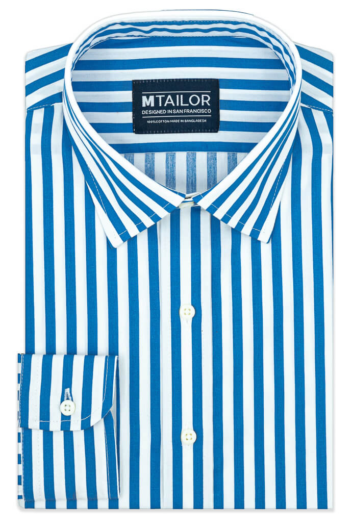 Wearing bold blue stripes set atop a crisp white background is one way to get you noticed. 100% Cotton Broadcloth Medium Weight