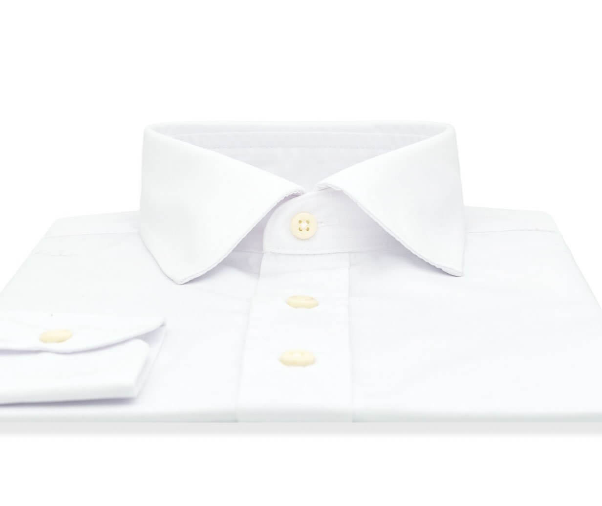 Brighten your day in this crisp white shirt. 36%Cotton, 64% Polyester Broadcloth 120's 2-Ply, Light Weight