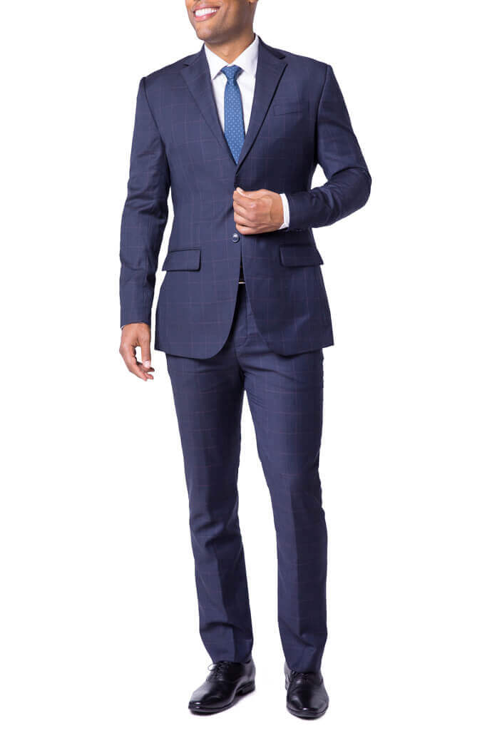 Checked suits have a reputation for being outdated, but a fine windowpane is still easy on the eyes. 100% Wool Sharkskin Super 100's