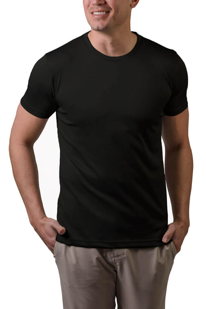 You can never have too many classic black tees in your wardrobe! Now in our performance fabric! 100% Lightweight Polyester